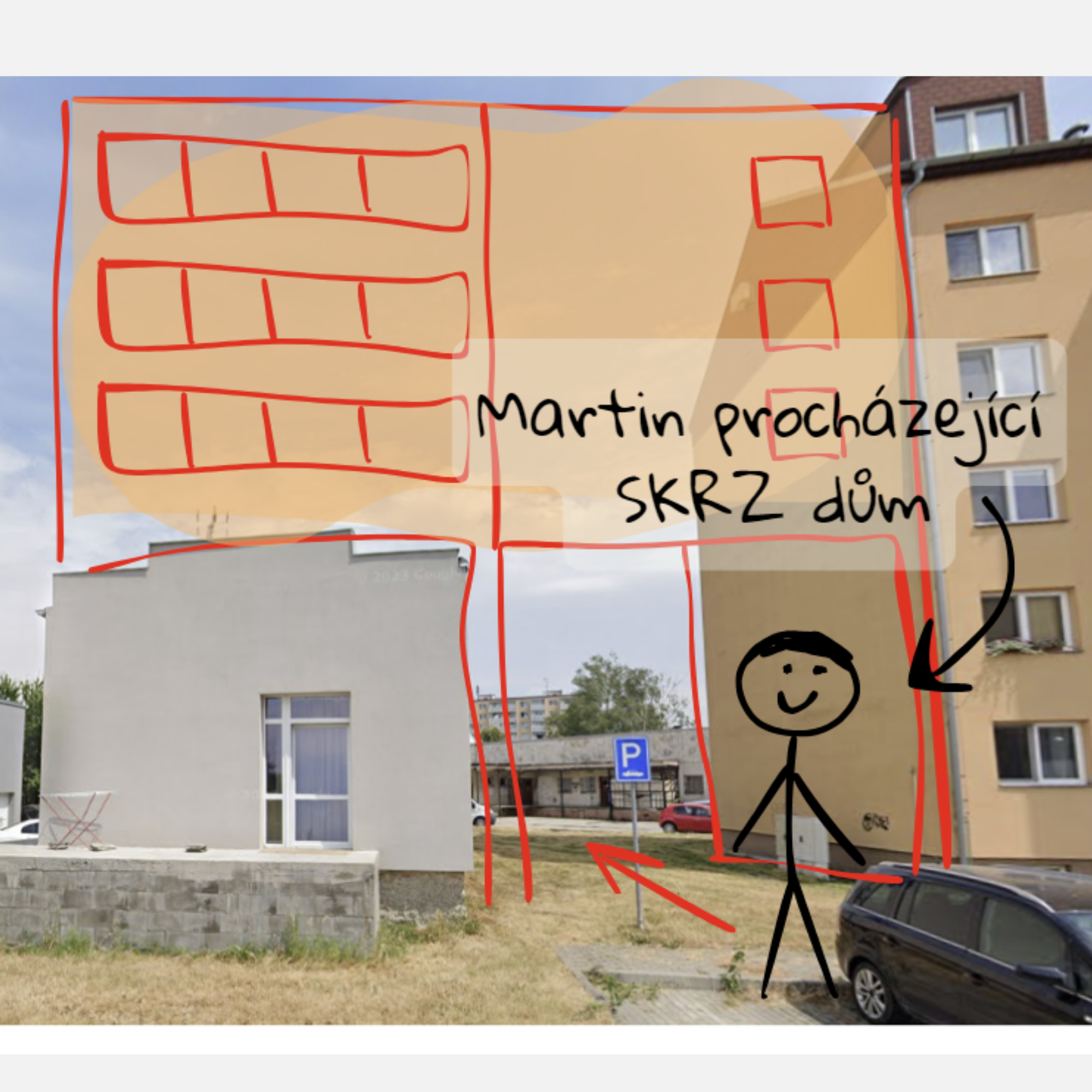 Martin přišel s originálním nápadem propojit řadové bytové domy s nově zrekonstruovaným domečkem.